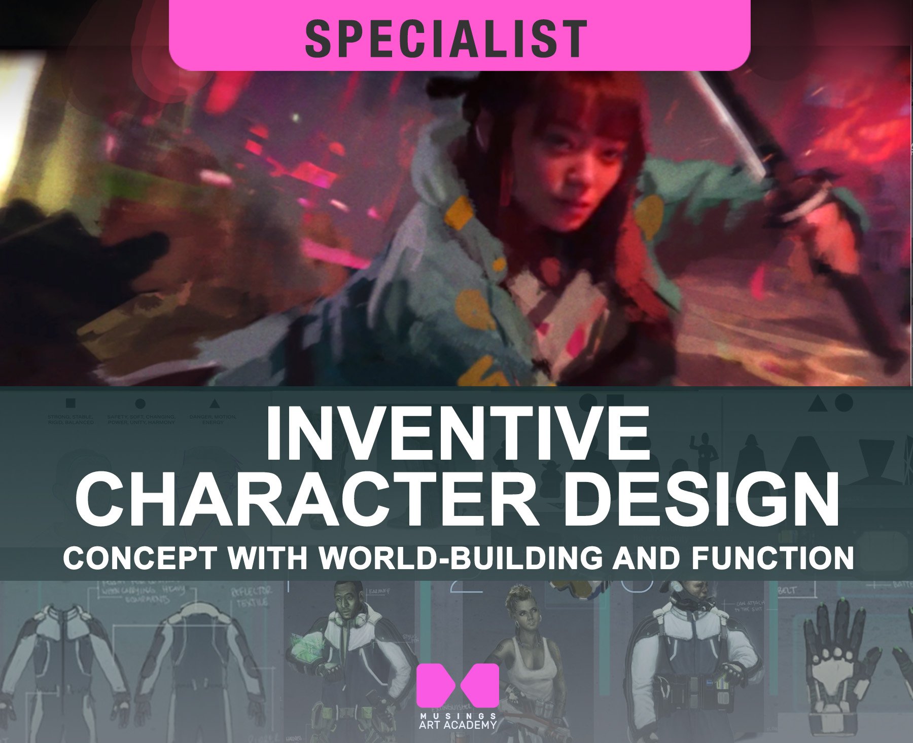 Each course gives a thorough exploration of how to streamline using industry practice workflows, from initial ideation to theoretical principles and 2D/3D art skills using industry-standard tools for finishing compelling renders of your illustration or concept art design solutions with feedback and guidance for the students.